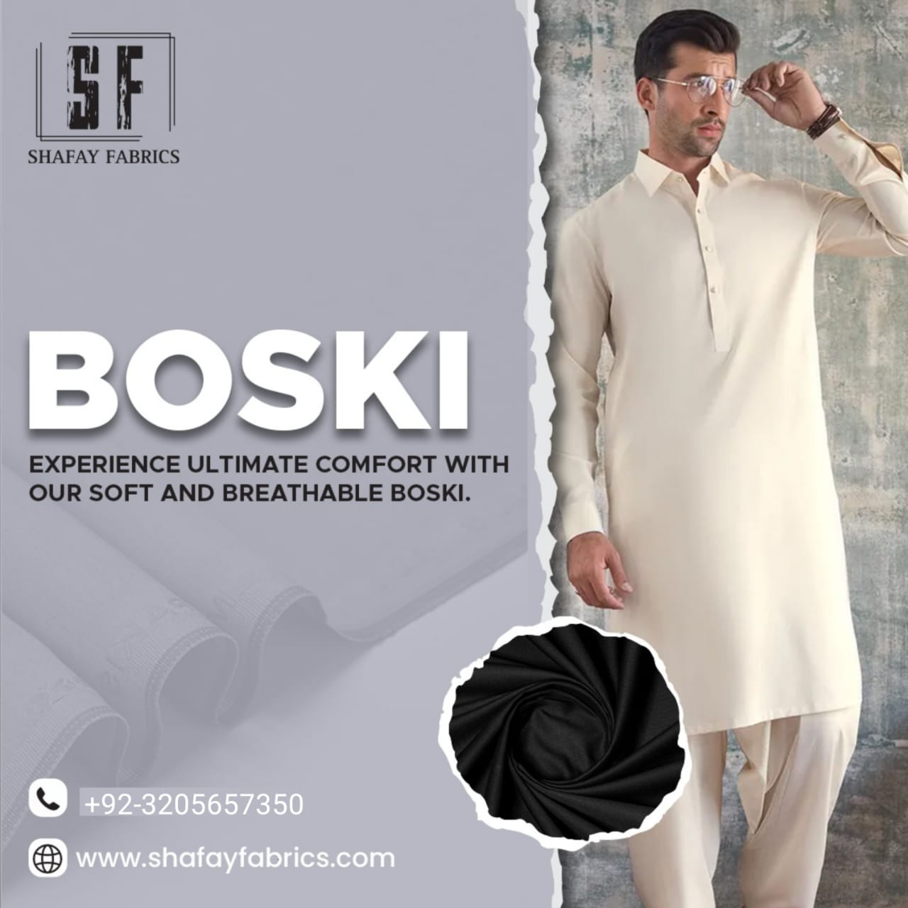 Upgrade your wardrobe with premium unstitched men’s fabric from our Premium Boski Collection.this fabric is wrinkle-resistant, easy to iron, and perfect for year-round comfort. ideal for men’s shalwar kameez or kurta pajama ✔️ Available in 4 elegant colors ✔️ Flat 44% OFF ✔️ 100% Warranty – Pakistan’s first ever quality promise ✔️ Free Nationwide Delivery Care Instructions: Hand wash with mild detergent in cold water. Perfect choice for men looking for stylish, durable, and affordable boski fabric in Pakistan.